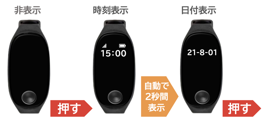 デバイス表面のくぼみのボタンを連続して押すことで、順番に画面が切り替わっていきます。
