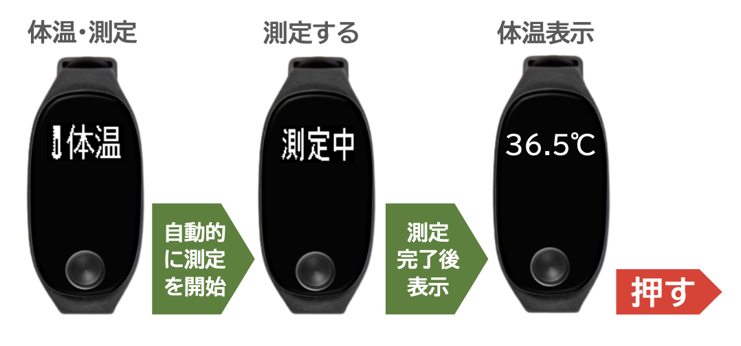 体温マークが表示された後、測定が開始され、測定結果(推定値)が表示されます。