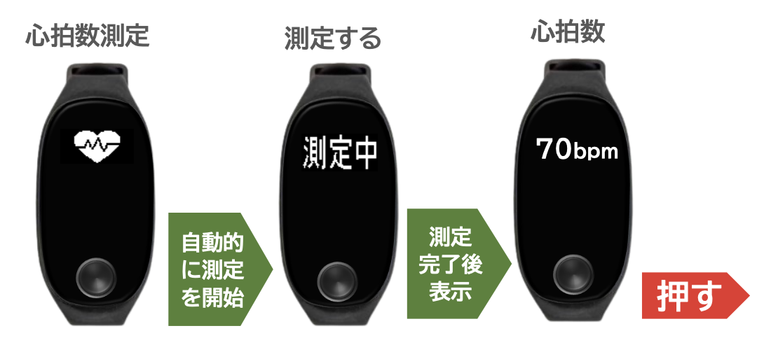 心拍(ハート)マークが表示された後、測定が開始され、測定結果が表示されます。