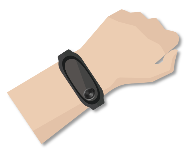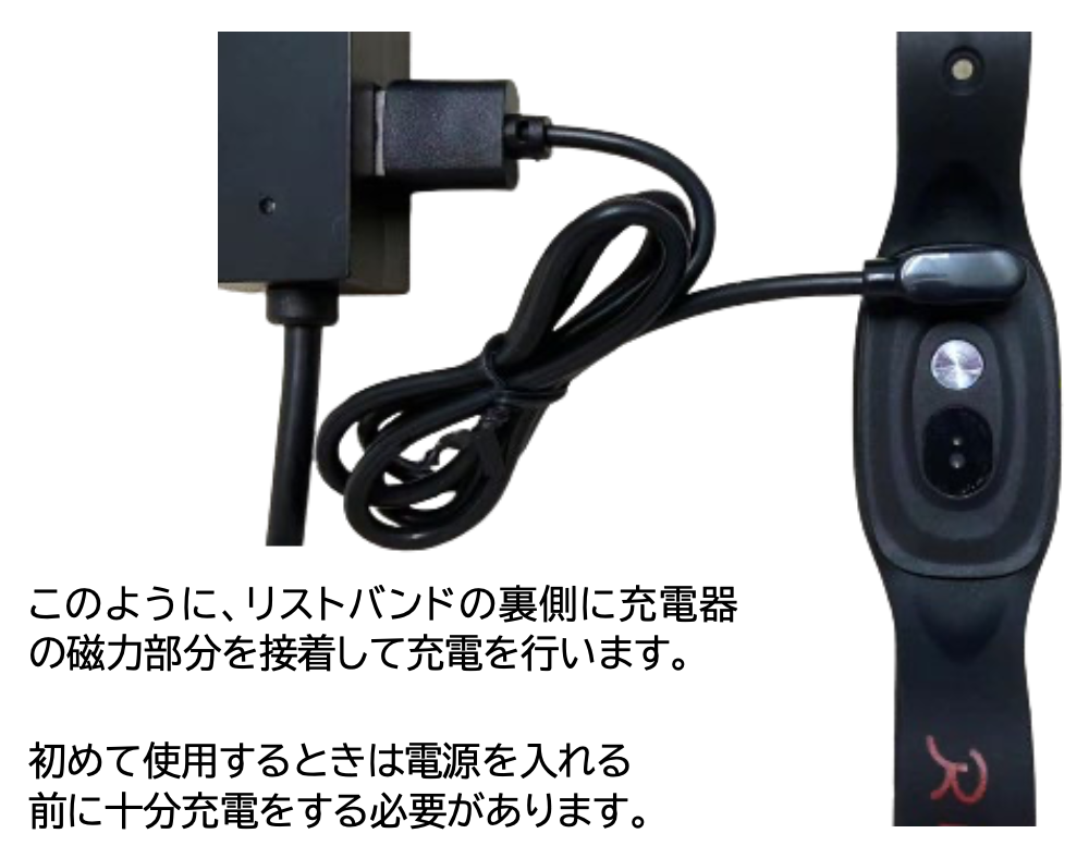 デバイスは、あらかじめ必要な設定がされていますので特別な設定は不要です。以下のように正しく手首に装着してください。