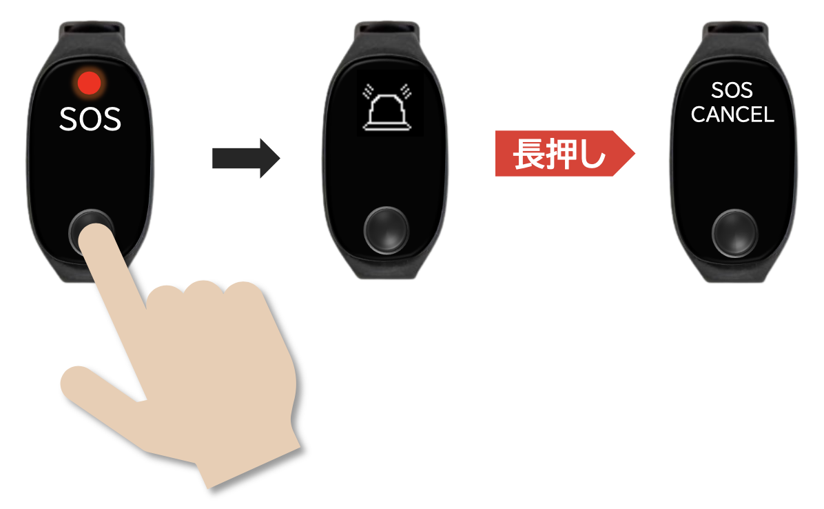 ボタンを長押しすることで、SOSを発信・キャンセルすることができます。